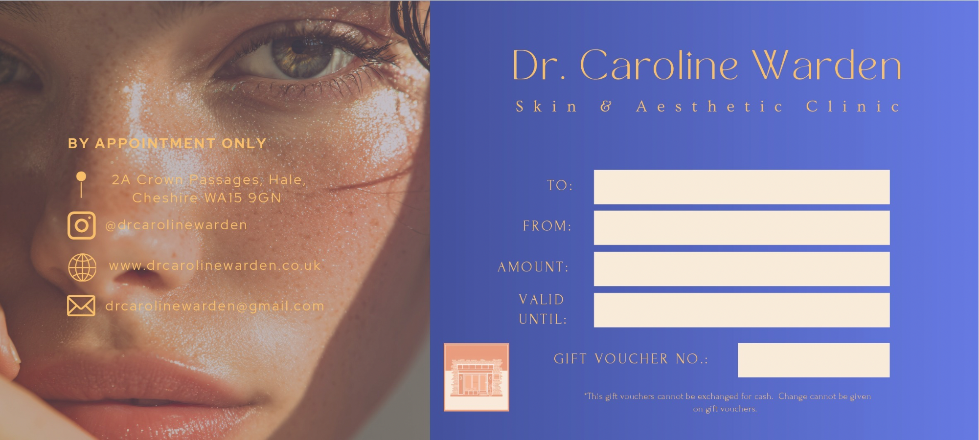 Physical and e-gift cards, can however be used at both our Hale and Disley clinics.